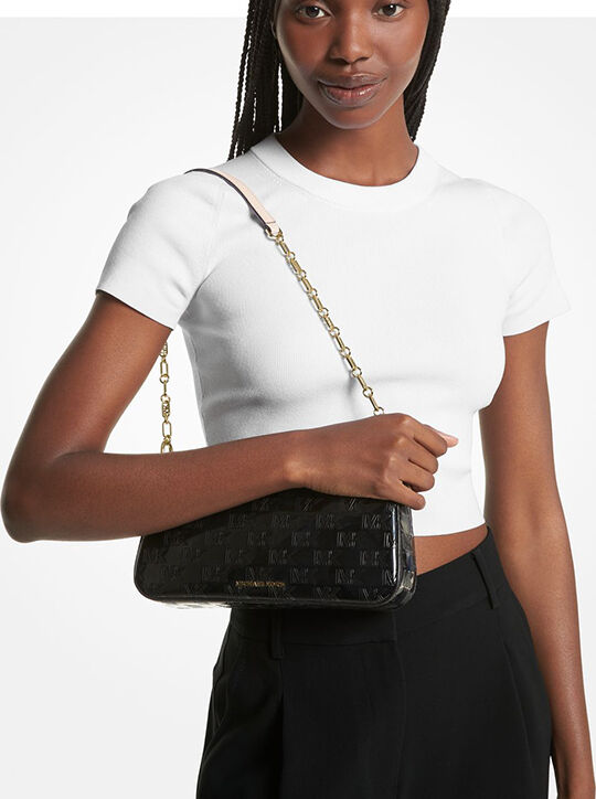 الرفيق المثالي لفساتين الحفلات والدنيم على حد سواء ، حقيبة إمباير بوكيت الخاصة بنا بنقشة لامعة تضفي طابعا مميزا. تناسب الصورة الظلية المدمجة هاتفك وحامل البطاقة والنظارات الشمسية وغير ذلك الكثير. نسقي بقية إكسسواراتك مع حمالة السلسلة ذهبية اللون.