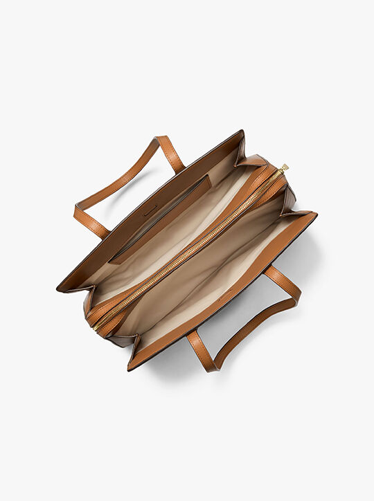 حقيبة ليلى يد تُسهّل عليكِ التنقل بأناقة. مصنوعة من قماش مطبوع عليه شعار الماركة بتصميم أنيق، هذه الحقيبة الكبيرة تُفتح على مساحة داخلية مُقسمة تُتيح لكِ تنظيم مستلزماتكِ اليومية الأساسية وغيرها بشكل أنيق. أعجبتنا أقدامها المصقولة التي تضمن عدم خدشها بسهولة عند وضعها على الأسطح الصلبة.