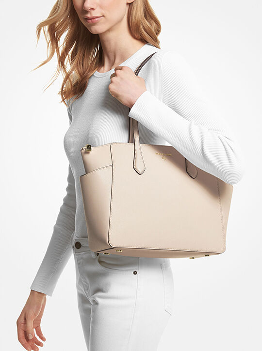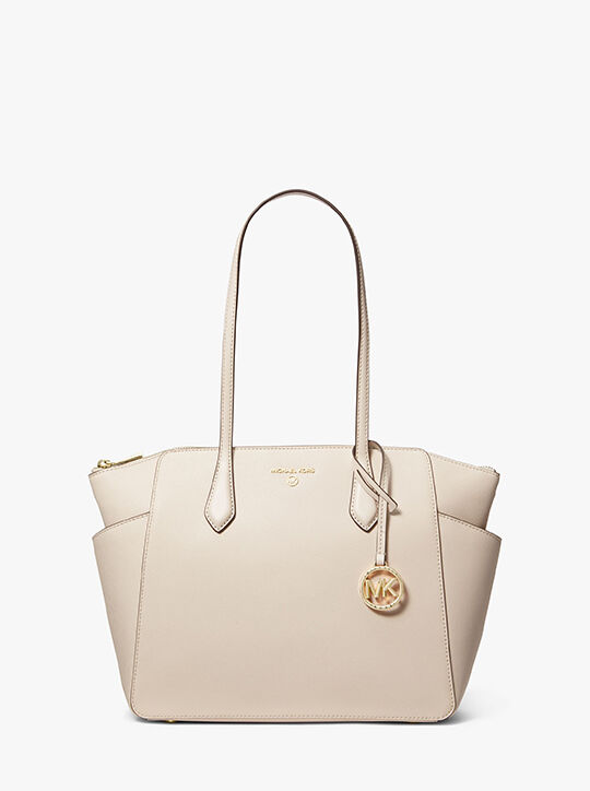 حقيبة مارلين هي حقيبة الحمل المثالية للارتداء اليومي. تترك قطعة "MK" المميزة للعلامة التجارية علامة لا تُنسى، بينما تفتح الحقيبة الجلدية المصنوعة من جلد سافيانو لتكشف عن مساحة داخلية واسعة مع جيوب مخصصة لضرورياتك اليومية. نحن نحب كيف تنزلق الأشرطة الرفيعة بسهولة فوق كتفك لضمان سهولة التنقل.
