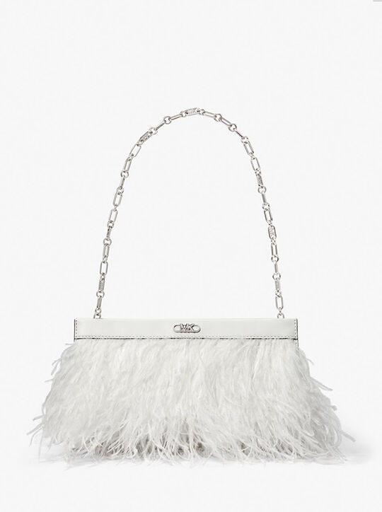 Michael Michael Kors حقيبة يد تابيثا كبيرة من الجلد ومزينة بالريش