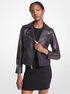 كلاسيكي ، أعيد اختراعه. صنع جاكيت الدراجة النارية هذا من الجلد الناعم الناعم الناعم ويتميز بأقحم داخلي مبطن في الخلف من المنتصف لإضفاء لمسة رائعة ومتينة.يأتي بسحاب غير متماثل للإغلاق وحلي معدنية لامعة.