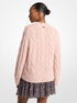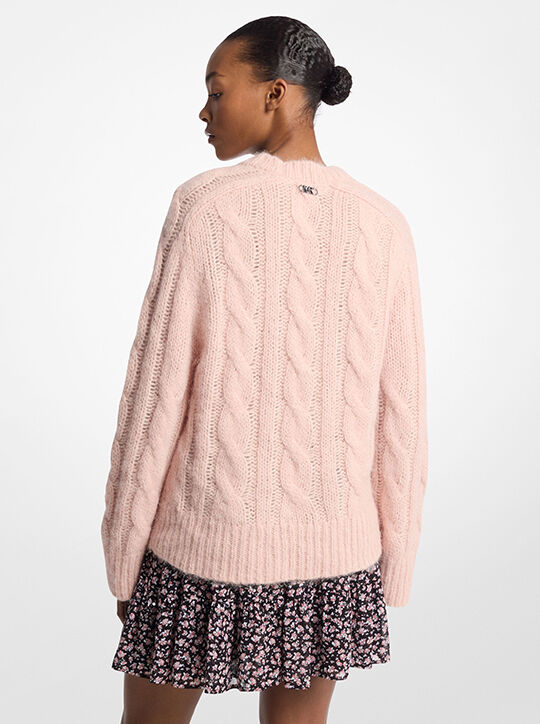 تعيد هذه السترة تعريف الأسلوب المريح والأنيق. فهي محبوكة بنمط كابل لا يتأثر بمرور الزمن، ومصنوعة من مزيج من النايلون والألبيكا لمقبض ناعم للغاية ومقطوعة لتناسب مريح قليلاً مما يضمن سهولة ارتداء الطبقات. أكملي لون الشامبراي مع التنانير المزهرة للموسم.