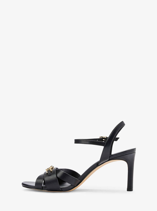 أحدث إضافة إلى مجموعة تيفاني تجعل ارتداء الملابس في المناسبات بعد ساعات العمل أمرًا سهلاً وأنيقًا. يتميز هذا الصندل ذو الأشرطة بكعب ملفوف مقاس 3 بوصات لسهولة الارتداء، وهو مصنوع من جلد مرن. أكملي المظهر اللامع المذهب بالأقراط المماثلة والمزيد.