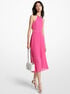 هذا الفستان الحالي مفعم بالأنوثة والأناقة والتطور. صنع الفستان من خشب جورجيت المنعش ويتميز بفتحة رقبة بسلسلة وفتحات جانبية تبرز خصرك. تضيف التنورة ذات الطيات الناعمة الكثير من الحجم. نسقيه مع بليزر وحذاء منحوت بكعب مرتفع.