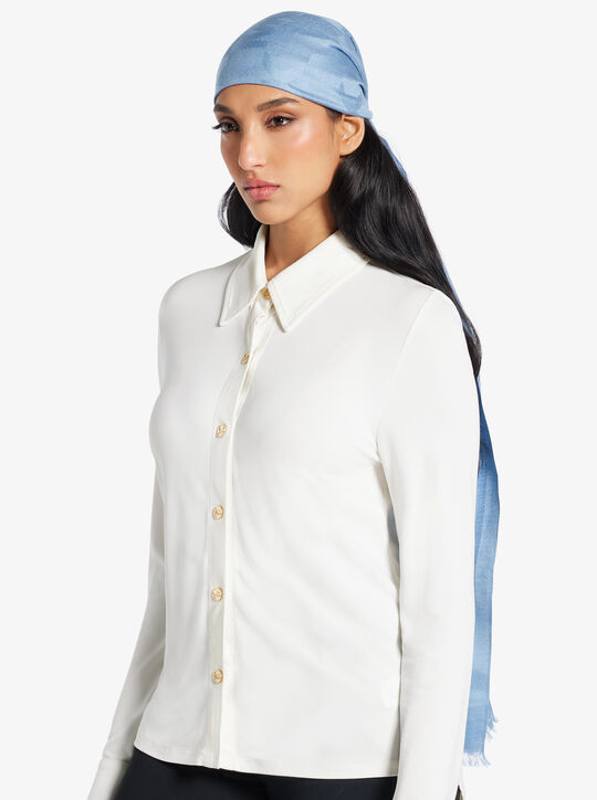 هذا الوشاح مصنوع من مزيج مودال، مما يجعله ناعمًا ودافئًا عند ملامسة البشرة. مزود بأطراف متطايرة، يتميز هذا الإكسسوار الأنيق بإصدار بلون موحد من أحرف MK الأولى وشكل مستطيل يوفر خيارات تنسيق لا حصر لها.