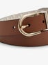 Featuring our Signature logo print, this belt reverses to a solid underside—either brown or black—for added versatility. It’s available in both gold-tone and silver-tone hardware to match your mood. Wear it with dark denim for a sophisticated touch.
