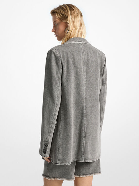 Designed in a gray wash for a well-worn effect, this denim blazer has endless layering potential thanks to its boyfriend-style fit. It’s cut in a single-breasted shape with strong shoulders and front pocket styling. Style it with denim in a similar hue for a tonal look.
