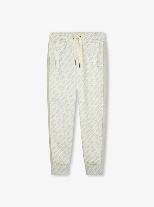 - Fit Notes: Jogging Pants In 76% Cotton, 16% Polyester And 8% Elastane, "Mk Empire" Allover Logo, Two Pockets, Gold Stripes On The Sides, Drawstring At The Waist