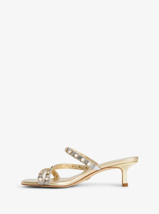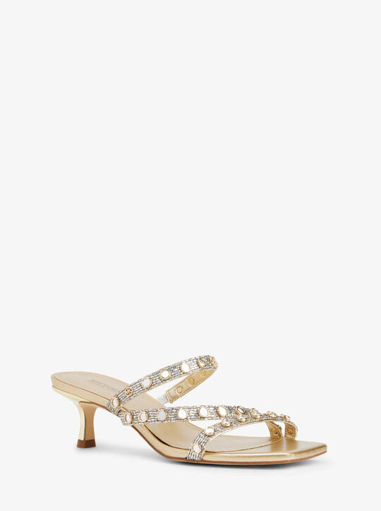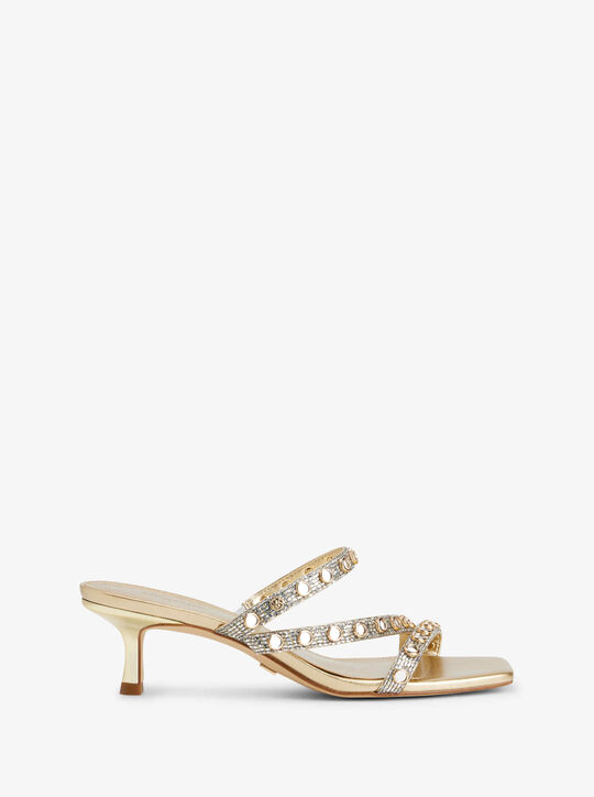 Michael Michael Kors Celia Embellished Glitter Chain Mesh Kitten Sandal