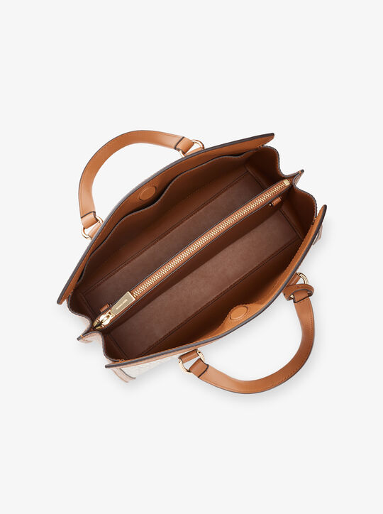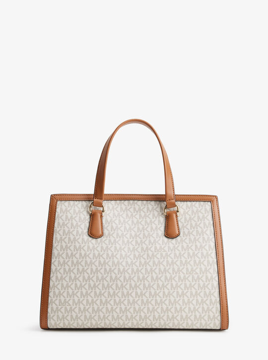 A spacious interior and timeless silhouette make our Chantal satchel an ideal everyday companion. Logo hardware and chain-link accents give this Signature-print canvas handbag a glamorous touch, while a detachable crossbody strap keeps your hands free and belongings close by. We think it’s the perfect carryall for travel days and more.