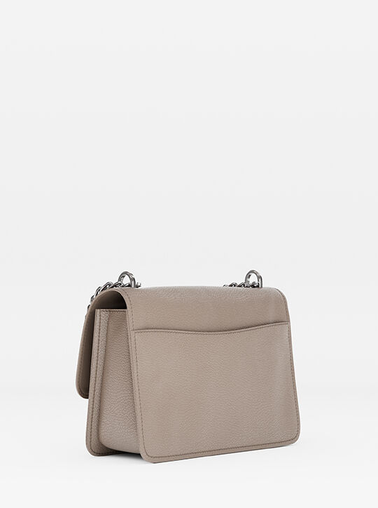 The chic and compact Claire is this season’s standout handbag. Crafted from pebbled leather in a fold-over silhouette with a snap closure, it boasts a structured shape with two handy slip pockets. Adjust the chain-link crossbody strap to your desired drop for hands-free wear.