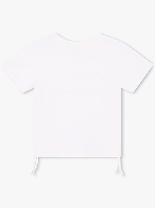 This polished but playful t-shirt features our Empire Logo print and side ties for an adjustable fit. A perfect match with denim, joggers or her favorite skirt.