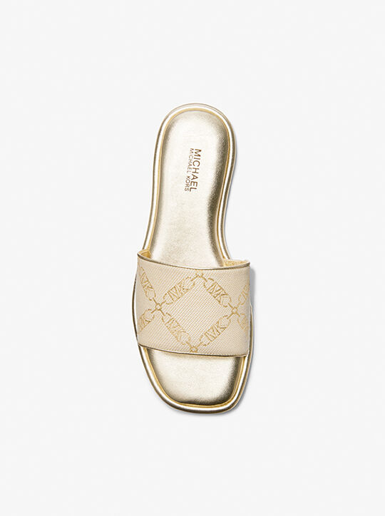 Michael Michael Kors Hayworth Metallic Empire Logo Jacquard Slide Sandal