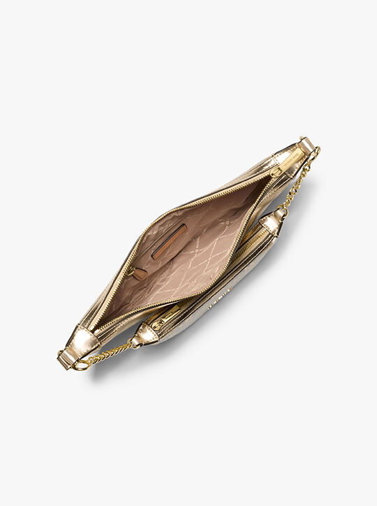 Michael Kors Outlet Hollis Medium 2-in-1 Metallic Leather and Logo Jacquard Shoulder Bag