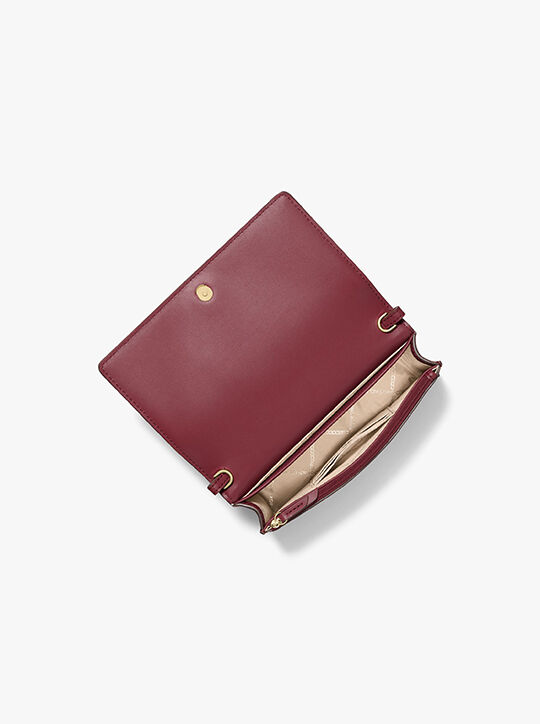 Crafted from pebbled leather and finished with a gleaming chain strap, the Jet Set crossbody is an ideal travel companion. The slim silhouette is well-sized to carry your everyday essentials and features an interior zipper compartment and multiple card slots to keep you organized. Remove the strap to carry it as a chic clutch.