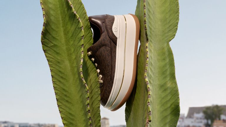 Logo details put a luxe spin on sporty sneakers.
