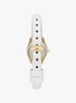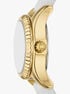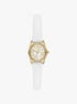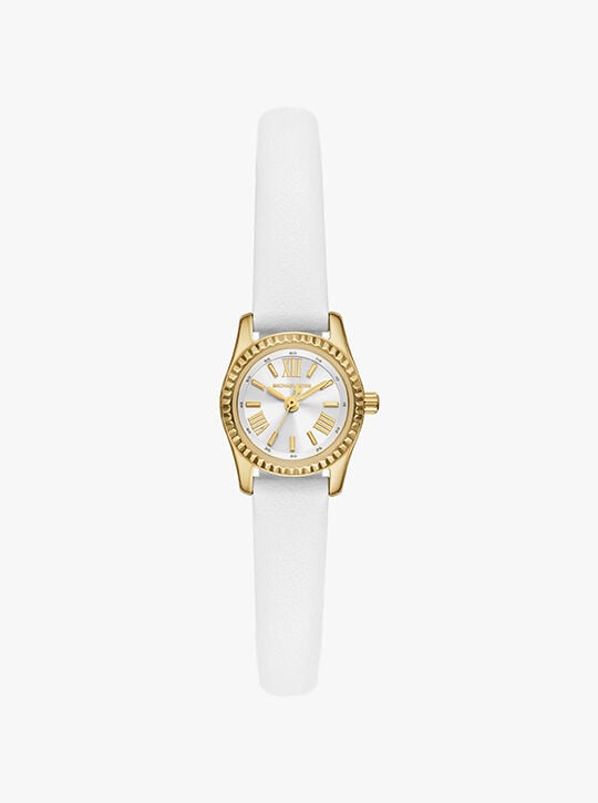 A luxe leather strap and gold-tone hardware come together on our elegant Lexington watch. With an intricately etched topring and miniature round profile, it makes a dainty addition to a shimmering wrist stack.