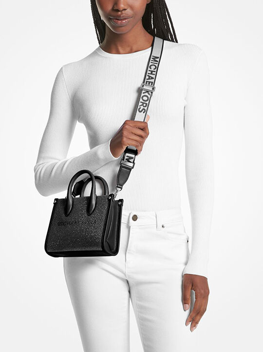Whether you’re heading to a daytime event or simply running errands, the Mirella will meet the moment. Fit just the essentials into this petite-sized tote, which can be carried by the top handles or worn cross-body thanks to a logo tape strap. Crafted from suede with allover glittering embellishments, it’s a reliable way to add glamour to any outfit.