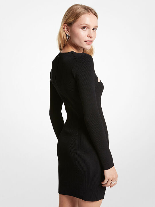 The little black dress returns for the season and is more covetable than ever. This latest version is cut from a ribbed stretch viscose blend in fitted silhouette with a keyhole neckline and cutouts tracing the front. Style yours with a clutch and barely-there sandals.