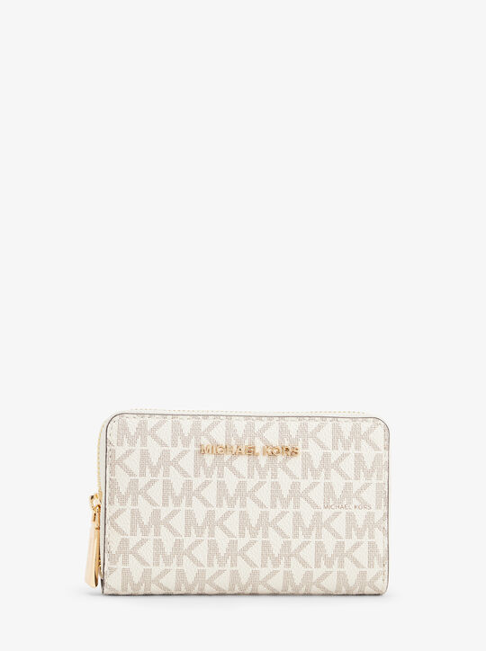 Designed in a compact zip-around silhouette, this logo print and leather wallet opens to reveal multiple card slots and space for your cash. We love how an exterior slip pocket offers quick access to your ID. Slip it into the coordinating tote bag, or a clutch come evening.