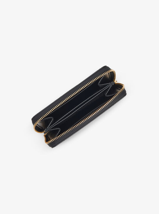 Designed in a compact zip-around silhouette, this pebbled leather wallet opens to reveal multiple card slots and space for your cash. We love how an exterior slip pocket offers quick access to your ID. Slip it into the coordinating tote bag, or a clutch come evening.