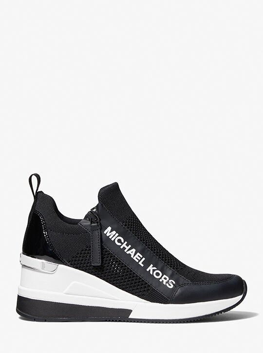 Defined by the brand’s coveted lettering, our Willis wedge trainer will kick any look up a notch. This pair is crafted from stretch knit for a breathable fit and feel, while a zip fastening makes them easy to slip on and off. Wear yours with coordinating athletic separates for a casual-cool look.